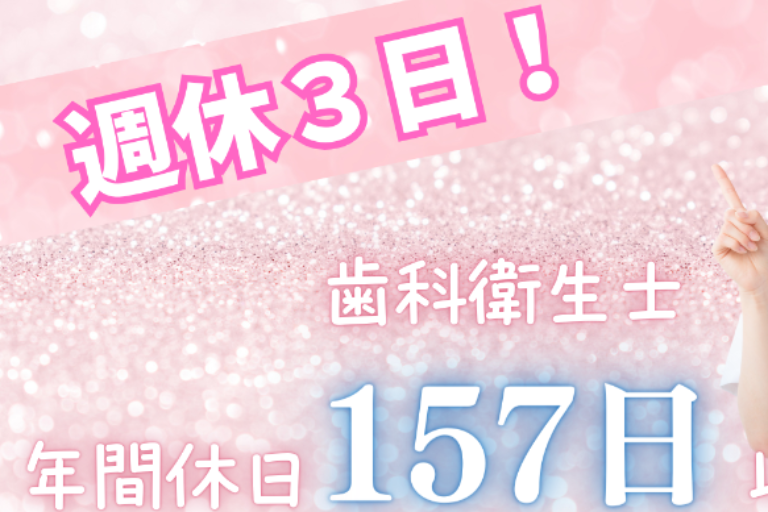 週休3日制・年間休日157日(有給取得率100%!)でワークライフバランスを守りながら、認定衛生士のサポート体制や研修制度で、新卒でも転職組でもしっかりサポートできる体制があります。